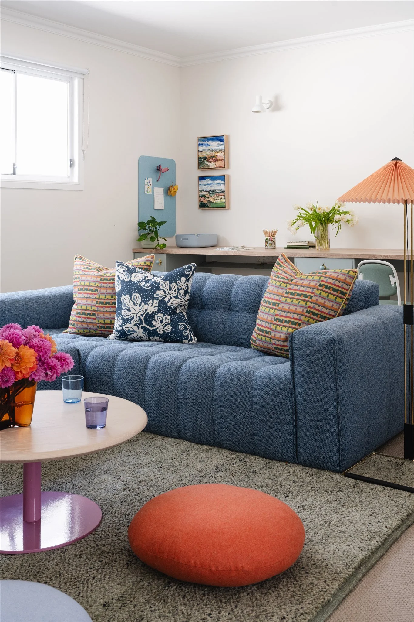 For our Grange project we worked with the client to turn this empty upstairs area into a family room, a work from home office and a study space for their young boys. Every item was carefully considered in an overall concept plan before anything was purchased. And as you can see they love colour so I made sure colour was embraced in a considered way. Photograph: Hannah Puechmarin