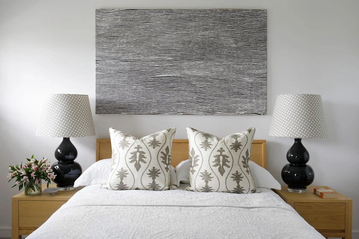 The bedrooms were designed to be calm and classic, offering a restful retreat, while the entry-office brings a joyful energy with vibrant pinks and a striking photographic artwork.